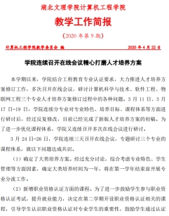 根据本专业的特点,大部分实践型的课程采用了实践项目的考核方式,另有二门专业核心课《计算机组成与体系结构》、《程序设计基础(二)》采用课程平台结合腾讯会议完成了期末考试。